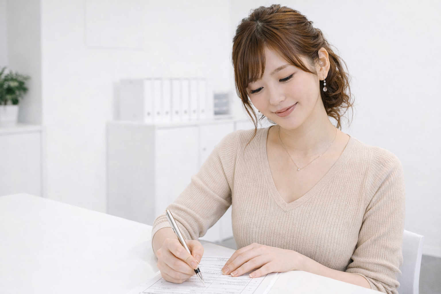 事務所にてご希望の条件や働き方をお伺いします。登録用紙のご記入後、事務所内の見学やドレスの試着も可能です。気軽に来てください。